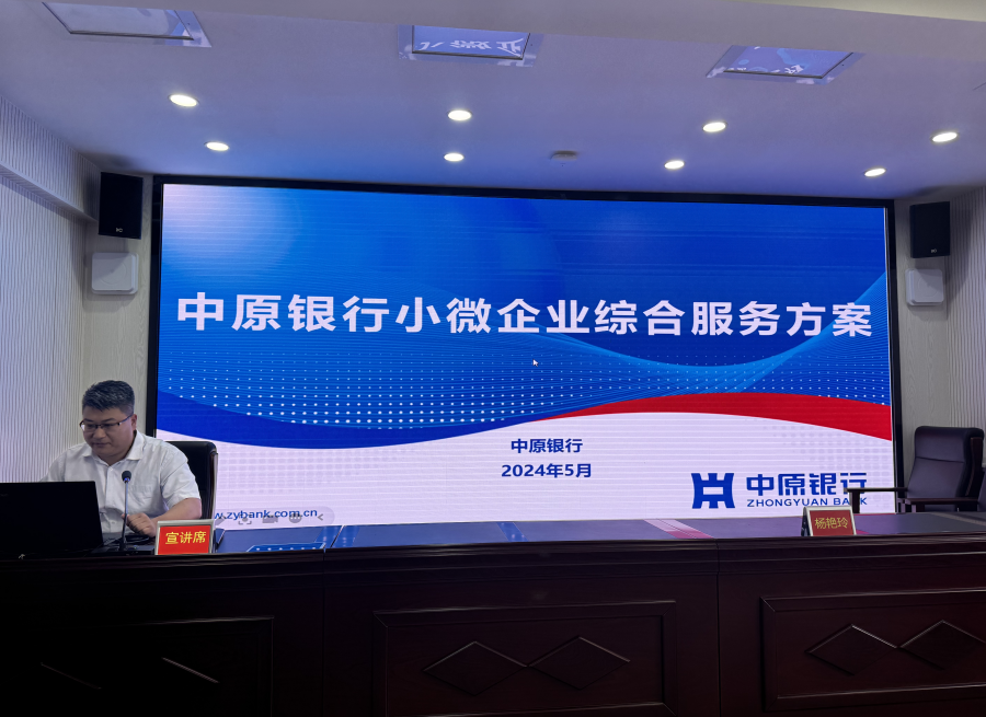 中原银行济源分行普惠金融部负责人冯朝帅介绍小微企业贷款产品。