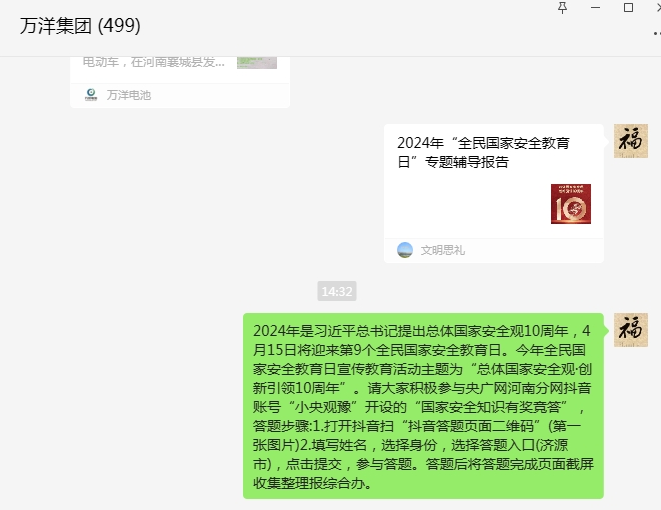 “线上+线下”双轮驱动宣传,全方位、多渠道让干部职工了解国家安全知识。通过摆放展板、张贴海报、制作电子标语等“线下”形式,让大家能更好地理解国家安全的重要性,增强国家安全意识。同时通过微信群转载、公众号等线上平台,推送相关知识、发布国家安全系列教育片,努力形成人人参与、人人有责,共同维护国家安全的良好氛围。