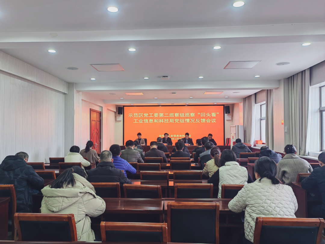 根据示范区党工委巡察工作统一部署,2月4日下午,示范区党工委第二巡察组向工业信息和科技局党组反馈巡察“回头看”情况。示范区党工委第二巡察组组长贺双福同志宣读巡察反馈意见,党工委副处级巡察专员赵中波同志出席会议并就抓好巡察整改工作提出要求,工科局党组书记、局长李军华主持会议并作表态发言。
